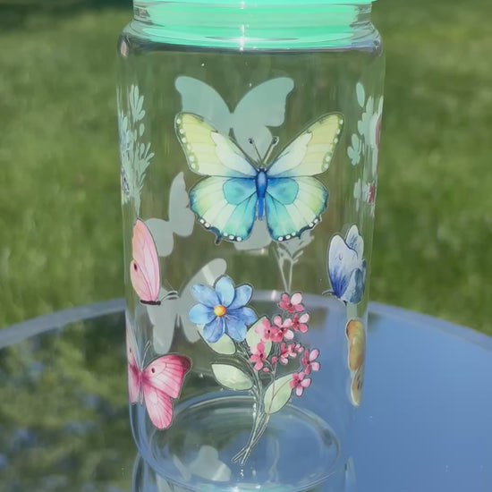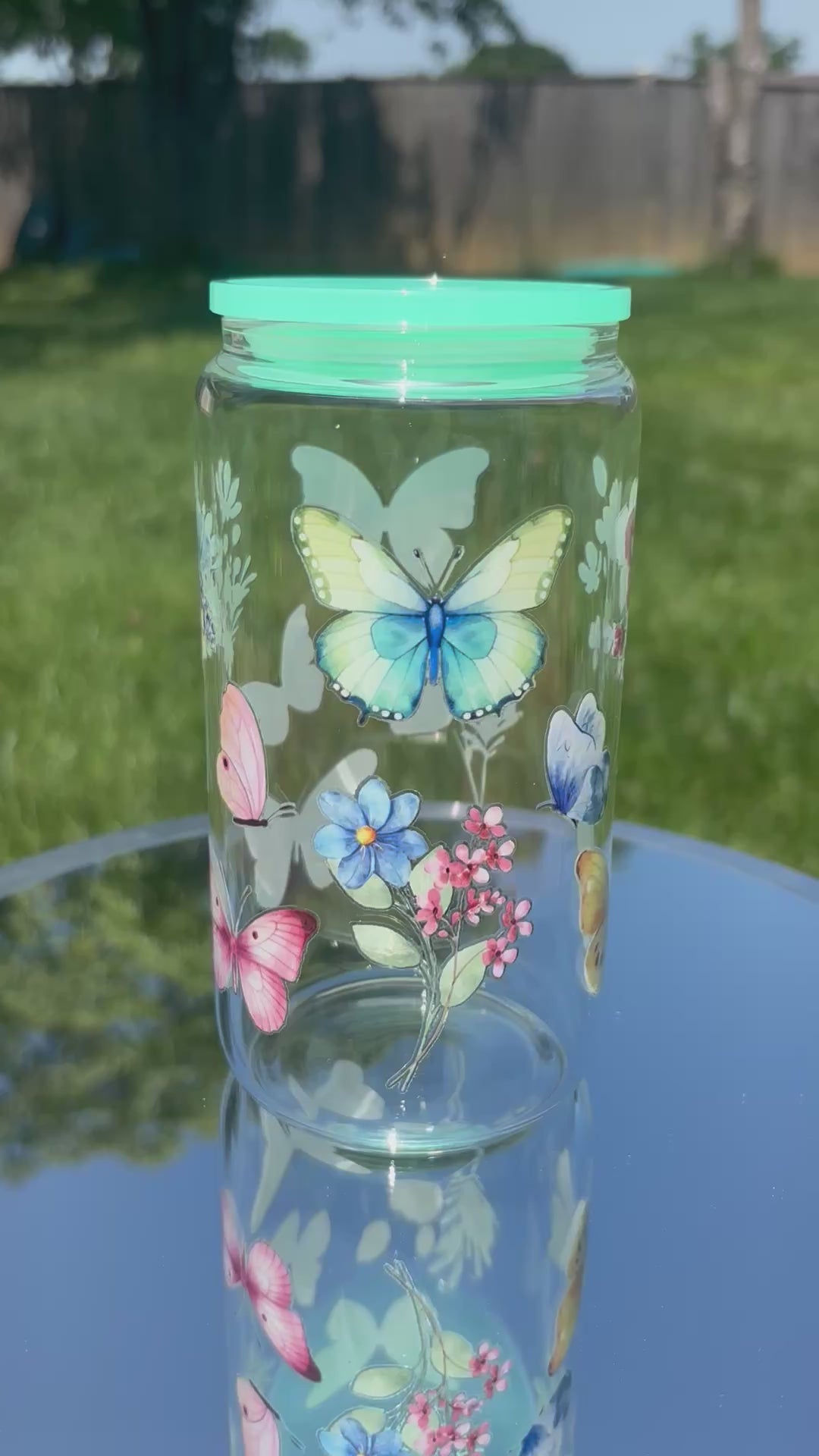 Give a unique and spring touch to your drinks with our glass cup decorated with butterflies and flowers. Its delicate and colorful design makes any moment a charming visual experience. Ideal for cold drinks such as juices, lemonades, cocktails or simply stylish water.